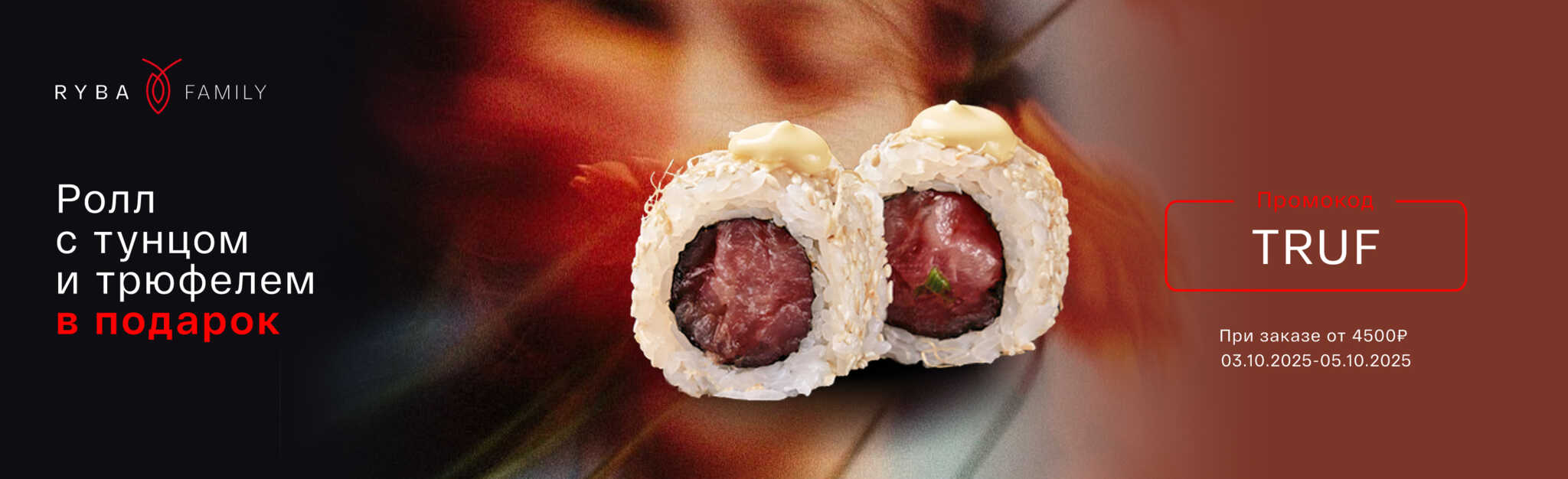 Акция действует при заказе от 4500 рублей на сайте http://rybafamily.ru и в мобильном приложении.