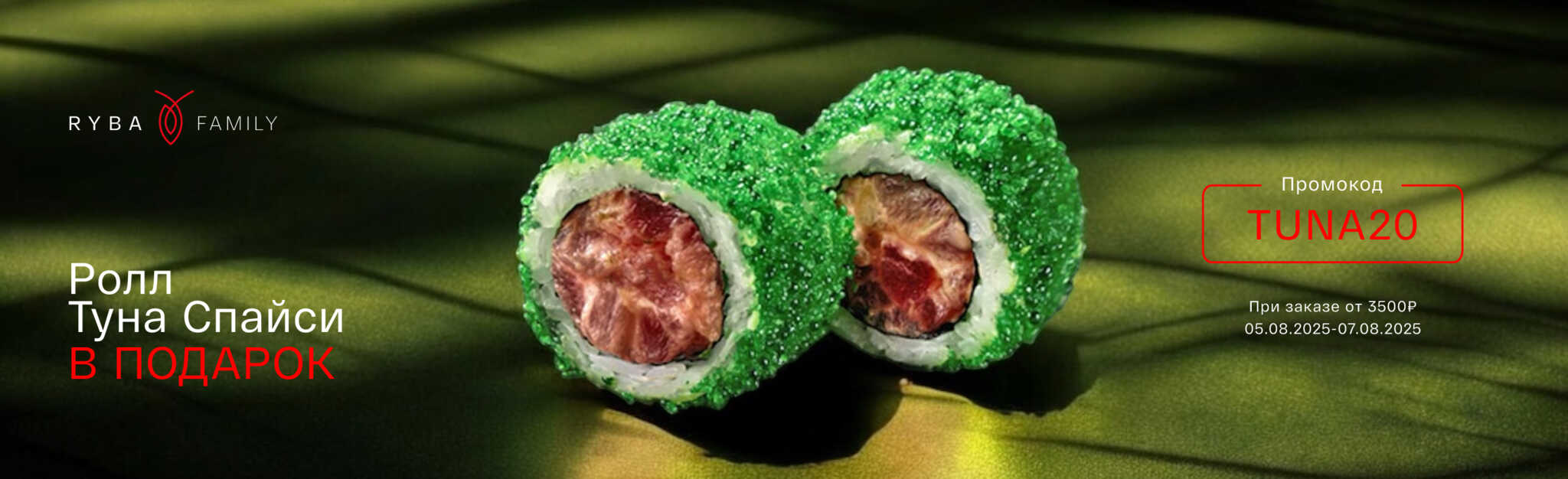 Акция действует при заказе от 3500 рублей на сайте http://rybafamily.ru и в мобильном приложении.