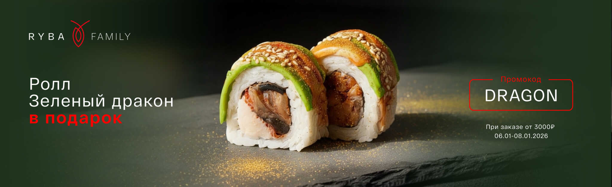 Акция действует при заказе от 3000 рублей на сайте http://rybafamily.ru и в мобильном приложении.